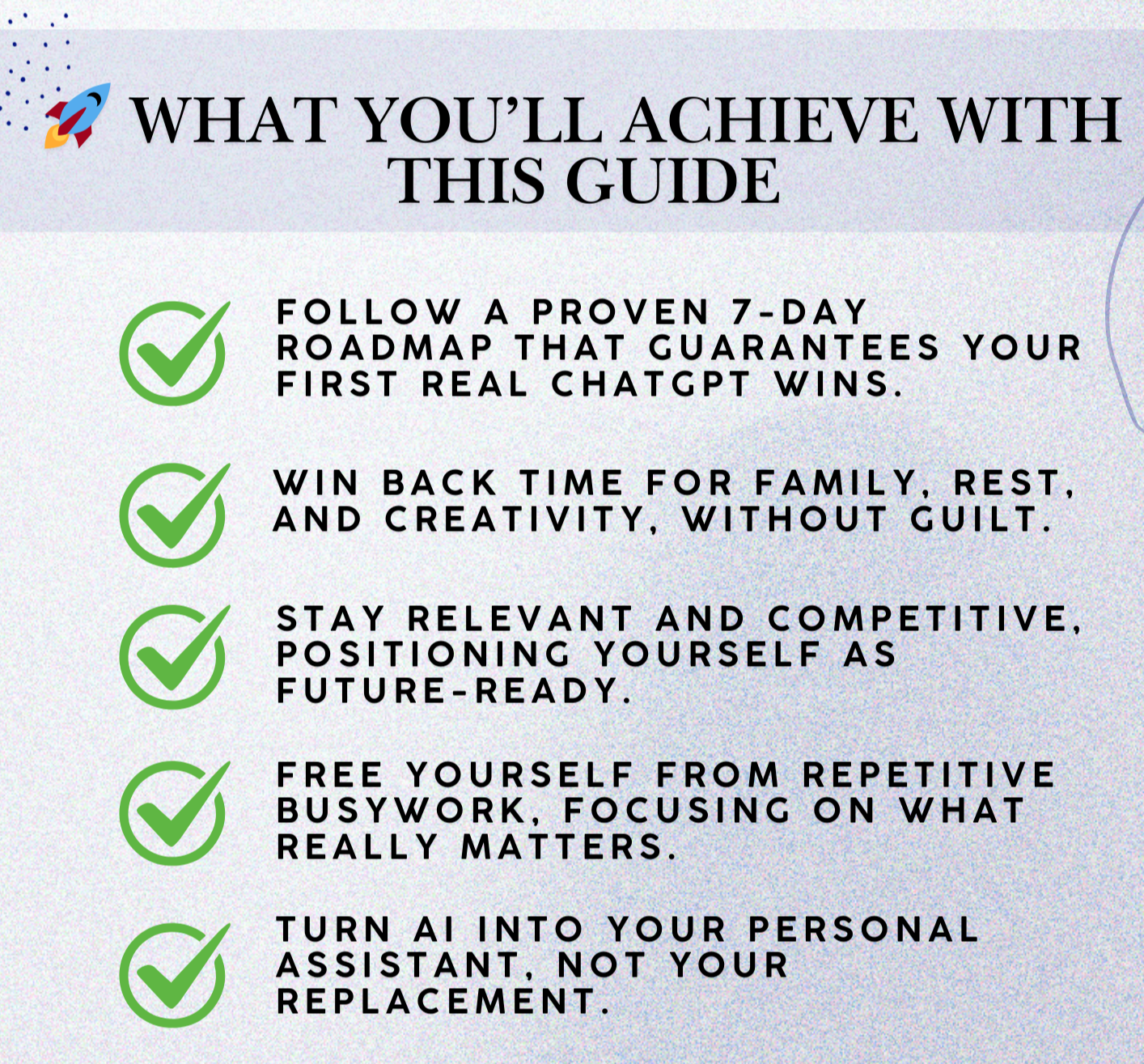 With Your First ChatGPT Wins Guide, you’ll go from confused beginner to confident AI-powered creator in just a few steps.